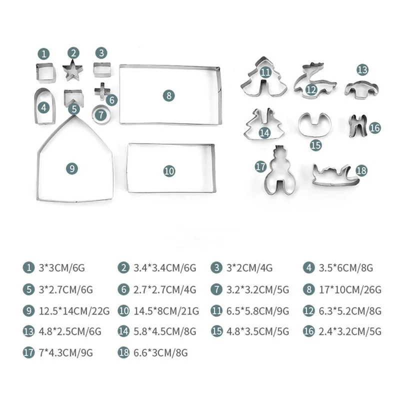8/10/18/24pcs Christmas Gingerbread House Cookie Cutter Set Stainless Steel Baking Mold Xmas Biscuit Party Decorations Supplies