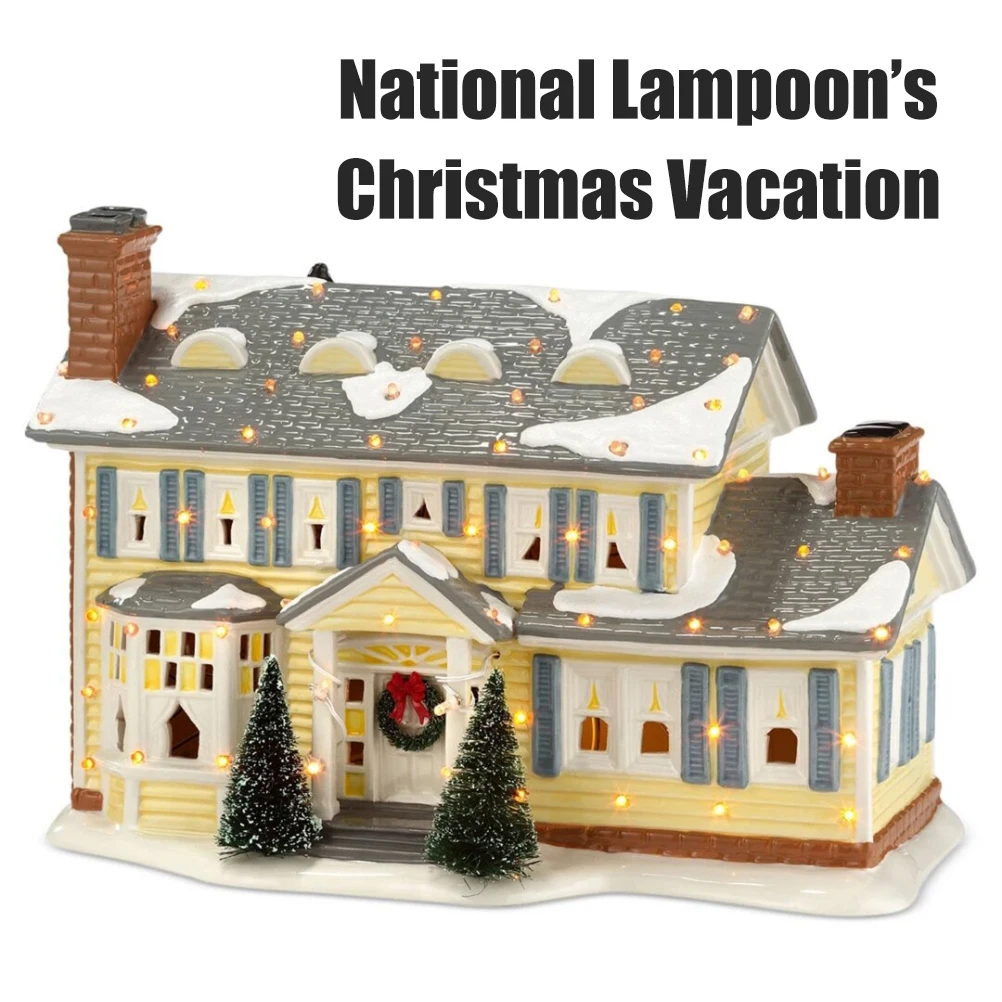 When many statuettes in the village are on sale on the Internet Tuesday. The central decoration is a hand‑painted "Griswold Holiday House", with a snow covered roof, a wreath covered front door, and flashing Christmas lights, as you expect, ah, flashing crazily. It will add interest to any Christmas mantelpiece.