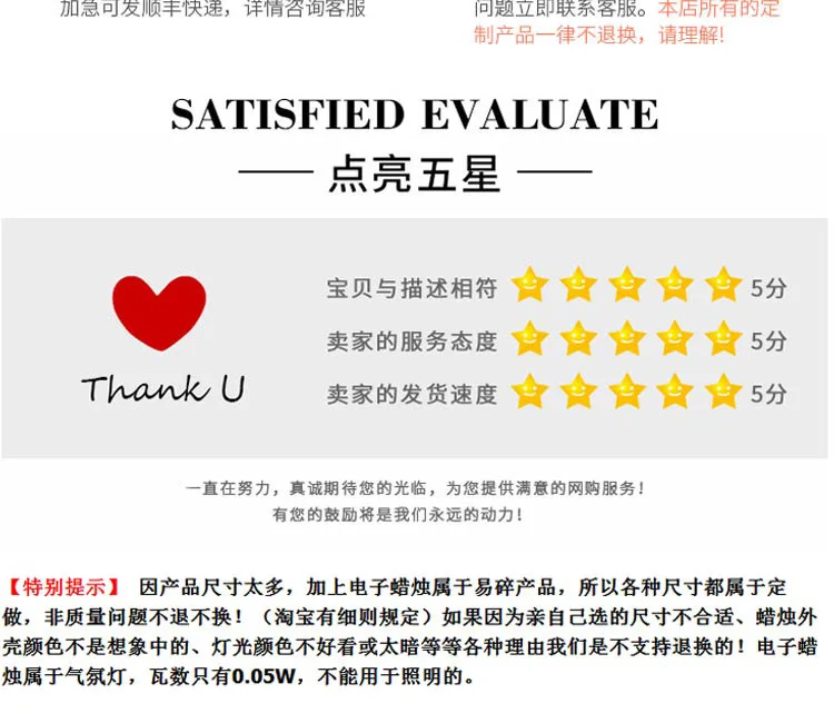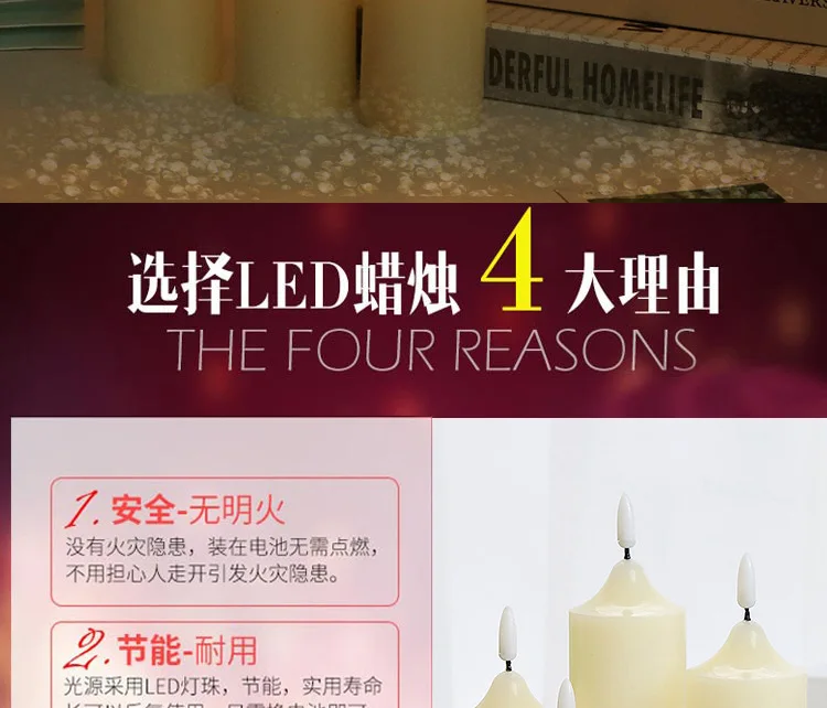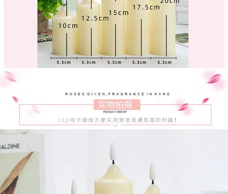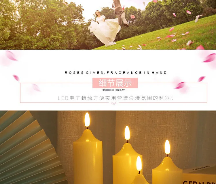 [power]: each candle uses 2 No. 5 batteries (you need to buy it yourself)